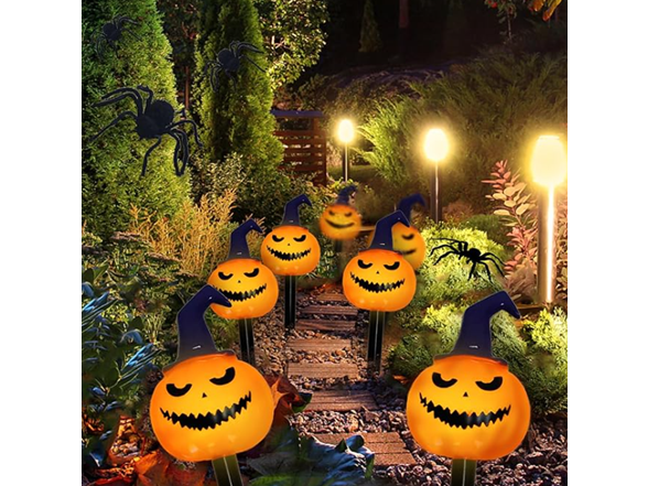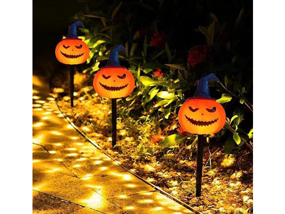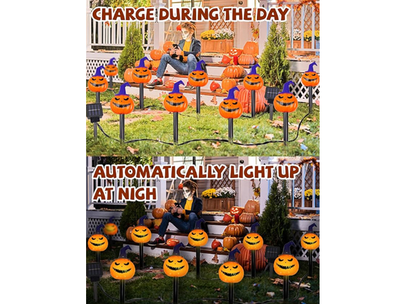 - Easy to Install: Simply place them where you want them, inserting the stake into the soil, and then connect the pumpkin with stake. Halloween Pumpkin Pathway Lights create a sparkling Halloween atmosphere for your outdoor space, enhancing the decorative effect.