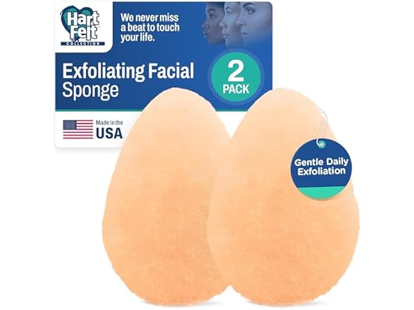 HartFelt [2 Pack] Gentle Exfoliating Facial Sponge for Face - Daily Cleansing Face Scrubber - Buf Dirt Away with Puf styled Reusable Face Pads for Removing Makeup, Dirt, and Dead Skin