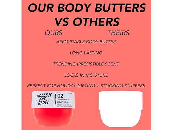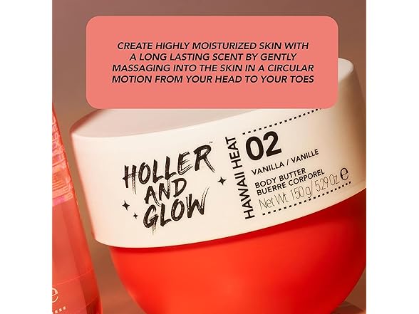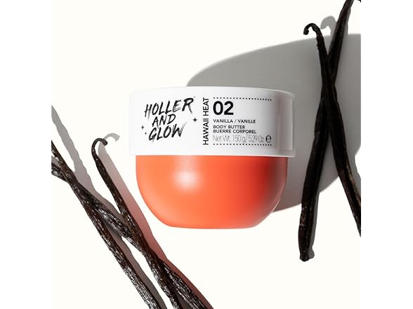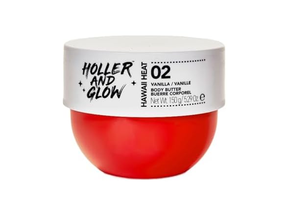 (1) HOLLER AND GLOW Hawaii Heat Vanilla Body Butter, Body Butter For Women, Smells Good, Body Lotion For Extremely Dry Skin, Moisturizing, Nourishing, Shea Butter, Peony, Amber Scented, 5.29 Oz