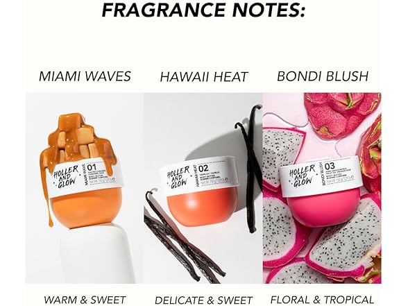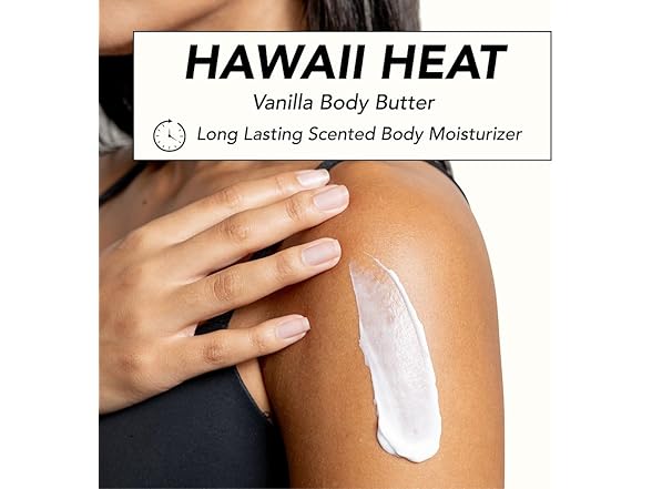 - Long Lasting Scent - Infused with notes of sweet vanilla delicate peony and warming amber, this irresistible fragrance captures the essence of Hawaii’s sun-soaked shores. Shea Butter helps firm skin's appearance for a healthy, hydrated glow