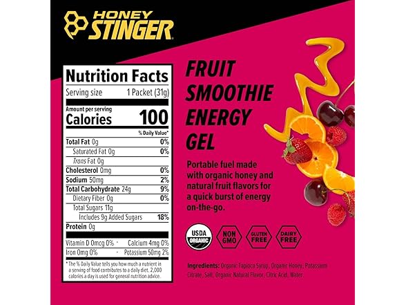 Honey Stinger Organic Energy Gels Fruit Smoothie, Single Unit