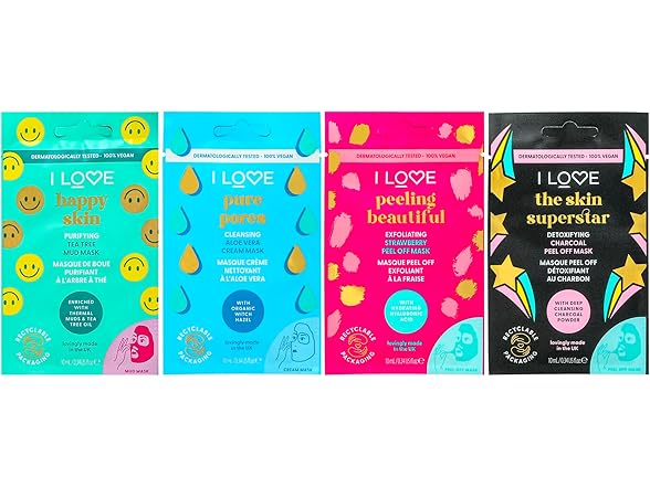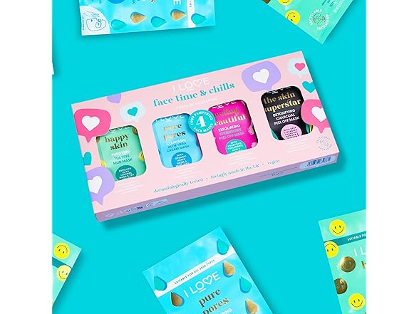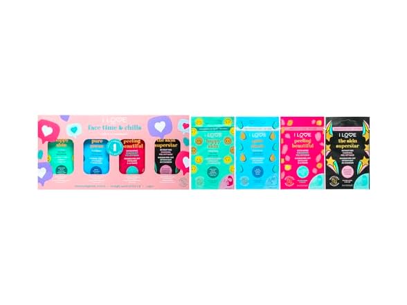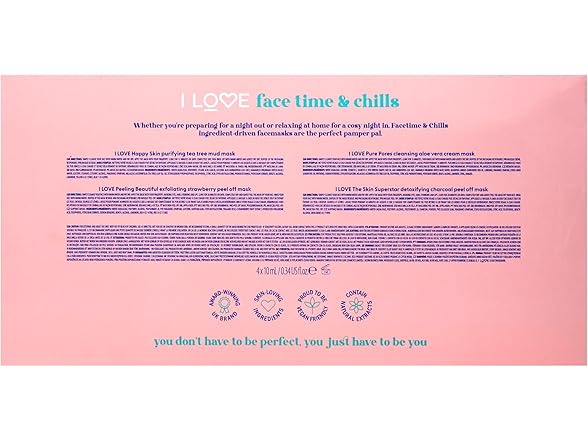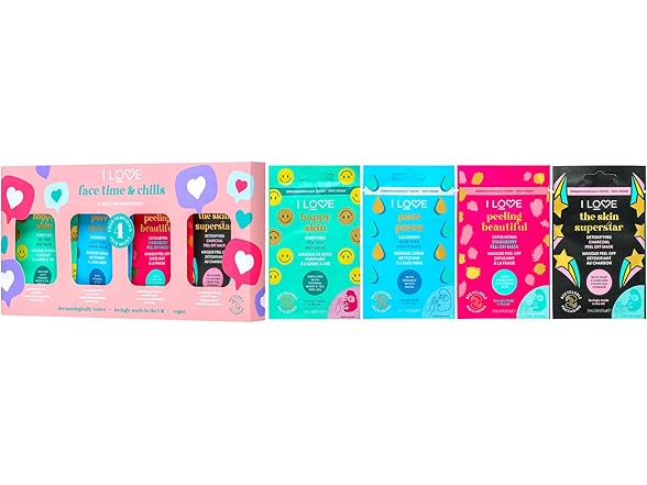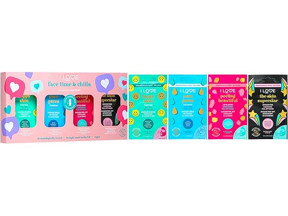 I LOVE Face Time and Chills Face Masks - Facial Mask Self Care Kit - Peel of Mask, Mud Mask, and Cream Mask Selections - Soothing and Hydrating - 4 pc