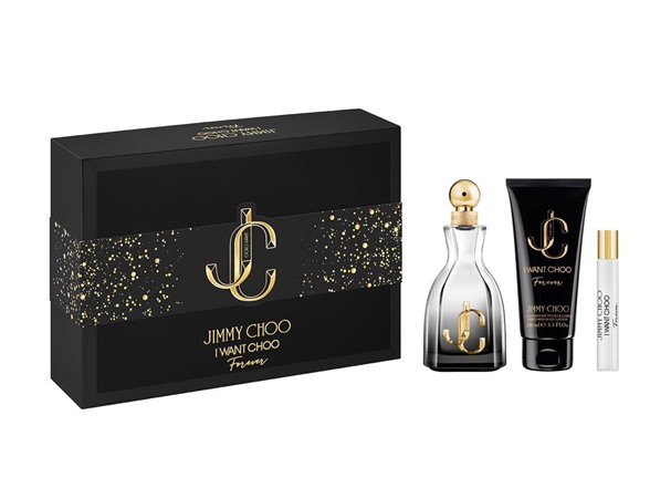 In the Box:- (1) I Want Choo Forever Jimmy Choo Set W EDP Spray 3.3 Oz - France EDP Spray Mini 0.25 Oz - France Body Lotion 3.3 Oz In Gift Box