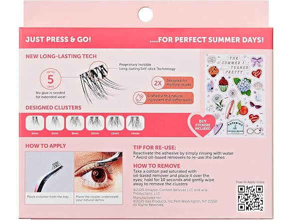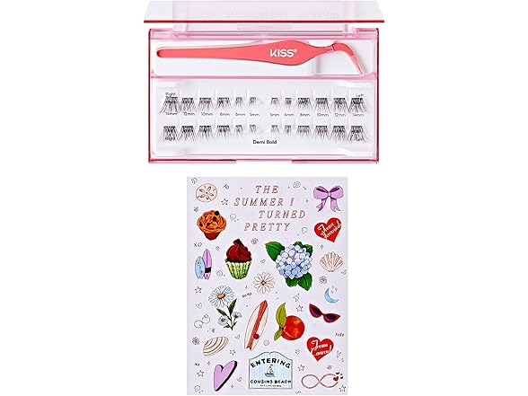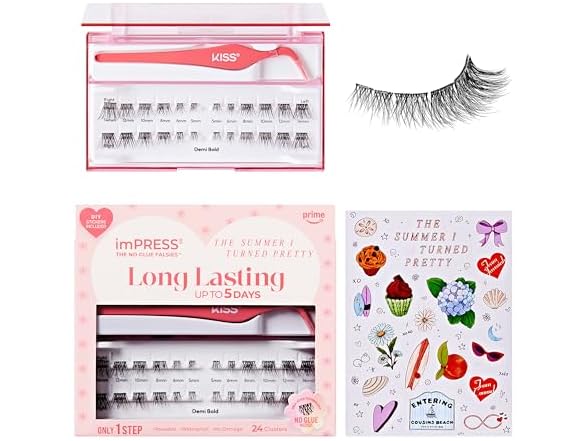 imPRESS | The Summer I Turned Pretty Long Lasting Self Adhesive Eyelashes, ‘Demi Bold’, 24 Medium Volume Press On Lash Clusters, 5mm-14mm, Non-Stick Applicator, Bonus Stickers, Reusable Case