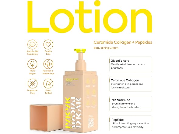 IYKYK By Makari Ceramide Collagen + Peptides Body Toning Cream, Smoothing & Firming Body Lotion for Women, Boosts Elasticity & Radiance for Glowing, Supple Skin, Vegan, No Fragrance, Paraben & Sulfate