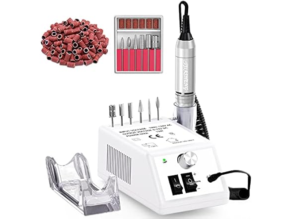 Powerful Nail Drill: Jiasheng Nail Drill is powerful, speed up to 20000rpm, it emits less noise and heat than other drill, and the hand piece is small enough to fit in your hand, you won’t feel hand fatigue during your operation for polishing acrylic nails.Practical Acrylic Nail Kit: Electric nail file equipped with 11 nail drill bits and 100pcs sanding bands, meet all your demands for acrylic gel nails, dip powder nails and poly nail gels, works effective for polishing, shaping and removing.