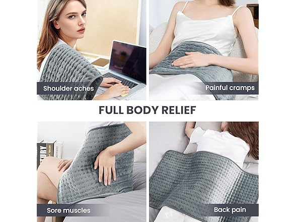 • Relief Pain and Cramps: The heat pad targets pain relief and cramps soothing, delivering effective warmth through different parts of the body, such as the neck, shoulders, back, abdomen, waist, arms and legs, quickly relieving pain, soreness, and tension in your muscles.