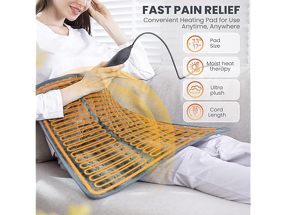 Heating Pad - Electric Heating Pad for Back Pain and Cramps Relief, Moist Heat Pad for Shoulder, Knee, Neck, 6 Heat Settings & Auto Shut Off and Machine Washable, 33" x 17"