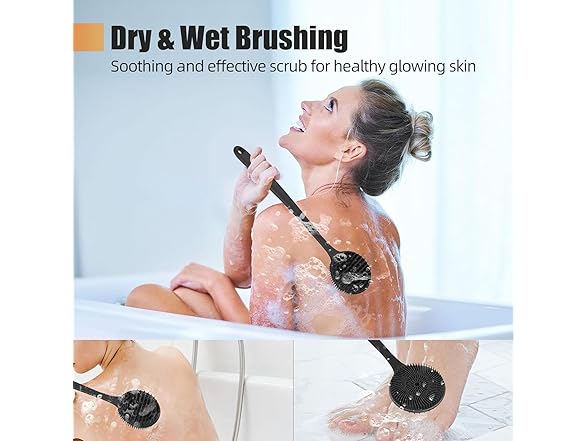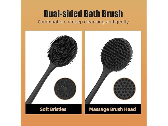- 【Dual-Side Silicone Scrubber】 Elevate your skincare routine with this game-changing double-sided silicone body brush! One side features ultra-soft bristles for a gentle exfoliation that leaves skin silky smooth, while the other side has firmer bristles to dig into dirt and grime for a deep, satisfying cleanse. No matter your skin type—dry, oily, sensitive, or combination—this back brush turns every shower into a little self-care retreat.
