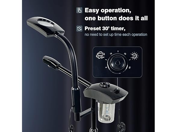 - [ Time Preset and Auto Shut-off Function for Safe ]: You can preset any time point within 30 minutes before using the spa steamer beauty equipment, which will help you set the time to use the face steamer for face beauty based on your personal habits. When water is insufficient, facial steamer will be auto shut-off and produce a cue tone. You need to shut down the machine, add water and restart it.