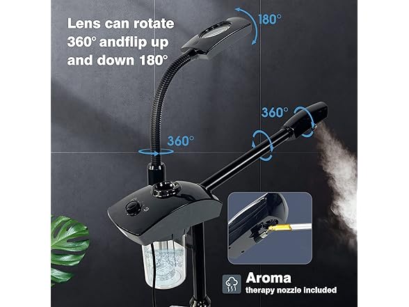- [ 2 in1 Professional Facial Steamer ]: This professional facial steamer with 3X magnifying lamp can fully open pores to achieve deeply cleaning, remove acne and blackhead quickly but also let water better penetrate into the skin and help dry skin increase moisture.