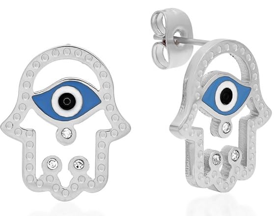 Ladies Stainless Steel Hamsa and Evil Eye Stud Earrings