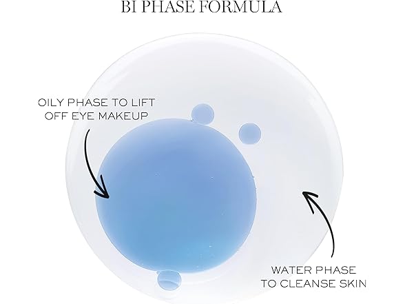 - BI-PHASE FORMULA - This unique formula is designed with two key components. The oily phase uses lipid concentrate to lift eye makeup off, while the water phase uses unique emollients to leave skin feeling perfectly cleansed.