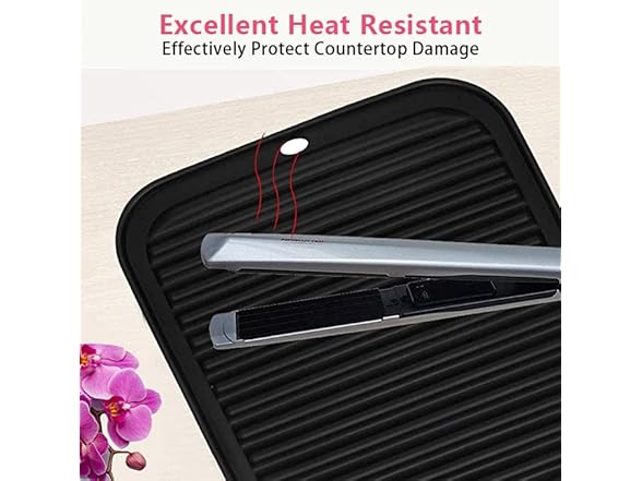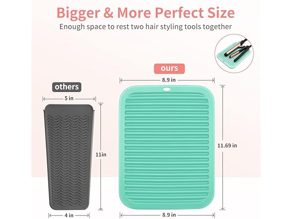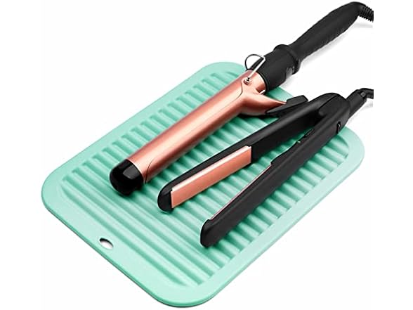 Large Heat Resistant Mat for Hair Tool with Hook Loop Strips, Silicone Heat Mat for Curling Iron, Flat Iron and Hair Styling Tool, Curling iron holder, Hair Dryer Mat, Vanity Makeup Accessories(Green)