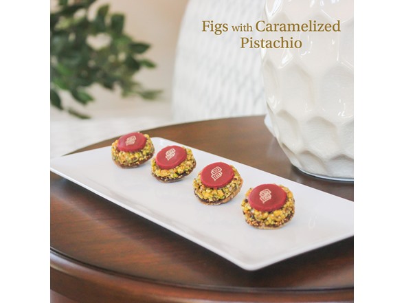 Figs with Caramelized Pistachio: Lightly roasted & caramelized pistachio brisures with fig is a perfect balance of crisp and soft.