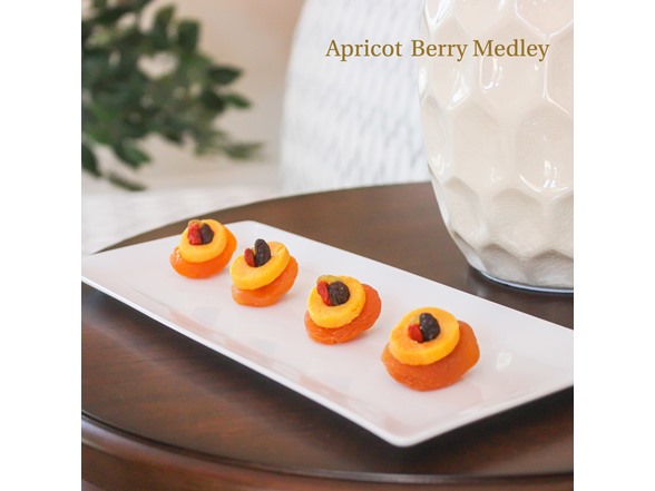 Apricot Berry Medley: Almond marzipan with a hint of roasted pistachio brisures and figs is a treat for food lovers.