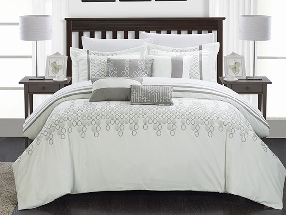 When decorating with the highest trend and fashion sense the fabulous 8 piece comforter set in white has it all. Amazing detailed embroidery in a contemporary outline, contrasting geometric pillows truly elaborate a sophisticated sense of style with simplistic touches. Enjoy contrast decorative pillows that enhance the look of your modern suite.