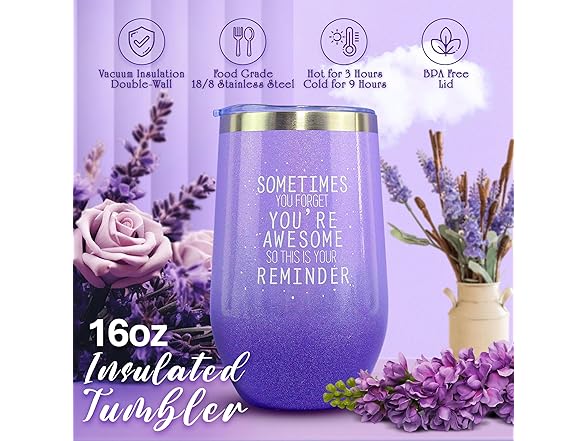 - 💖 Personalized Gifts for Women Who Have Everything - This lavender care package adds a touch of elegance to her day. "YOU ARE AWESOME" on the wine tumbler adds a personal touch, making it a perfect gift for best friends, sisters, moms, daughters, coworkers, or girlfriends.