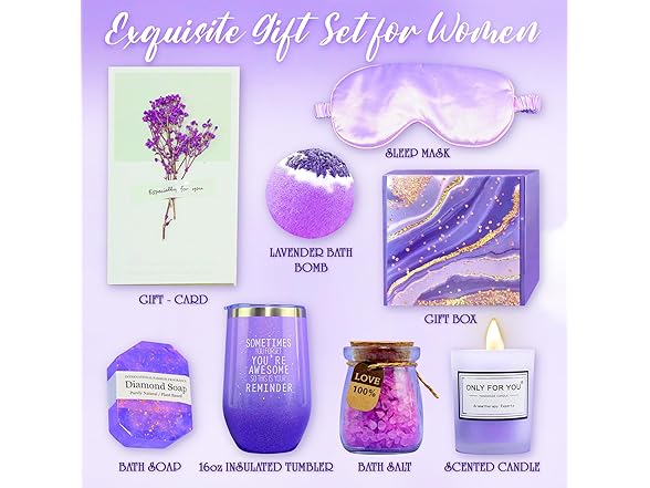 - 💖 Perfect GIft Surprise - the beautifully crafted gift set is perfect for birthdays, anniversaries, Valentines Day, Mother's Day and Christmas. A lavender greeting card is included allowing you to customize your heartfelt message for the recipient, Express your love and appreciation to the important women in your life - whether it's your best friend, sister, mom, wife, nurse, teacher, coworker, or female boss.