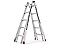 - 5 Ladders in 1 - can be used as adjustable-height dual-sided stepladder, extension ladder, stairway ladder, 90-degree wall ladder, and scaffold bases