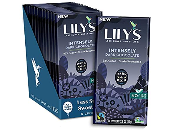 - (1) Lily's Intensely Dark Chocolate Bar, 92% Cocoa, 2.8 oz (12-Pack)