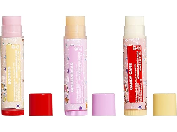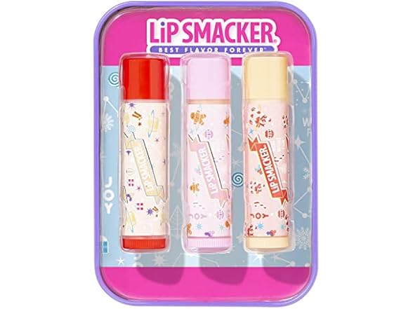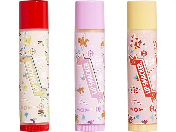 Lip Smacker Holiday Christmas Flavored Lip Balm Original & Best Tin - Moisturizing, Soothing Trio Eggnog, Gingerbread, & Candy Cane