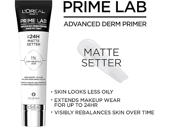 L’Oreal Paris’ Prime Lab Advanced Derm Primers are a collection of skin-loving primers that extend makeup wear for up to 24H and visibly improves skin over time. Formulated with tried-and-true skincare ingredients, each primer targets a specific skin need with its unique formulation. Matte Setter with LHA plus Salicylic Acid to rebalance skin. Find all primers. Pore Minimizer with AHA, LHA, BHA Complex to refine the look of skin texture. Dullness Reducer with Niacinamide instantly corrects dullness for tan to deep skin tones. Redness Eraser with Niacinamide to neutralize the look of redness. These formulas are dermatologist tested for skin safety, non-comedogenic so they won’t clog pores, and paraben-free.