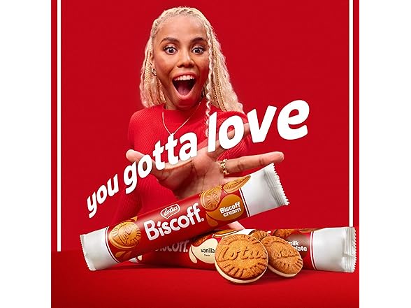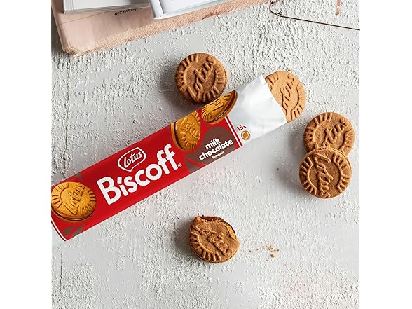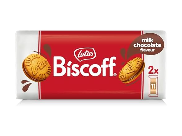 - THE UNIQUE TASTE OF LOTUS BISCOFF now comes in a sandwich cookie. Two delicious crunchy Biscoff cookies with a smooth Milk Chocolate cream filling in between. It’ll be love at first bite!