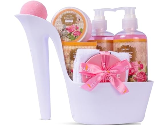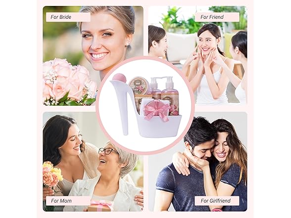 - ENHANCES DAILY ROUTINE WITH A SPA-LIKE EXPERIENCE : Spa basket gift set Includes body butter, body lotion, shower gel, bubble bath, and bath bomb, towel, and mirror—all designed to restore and calm the senses. Suitable for customers seeking womens bath and shower gift sets, luxury self care gifts for women, or rose bath products for women. The reusable high heel basket adds charm and long-term value to the gift.