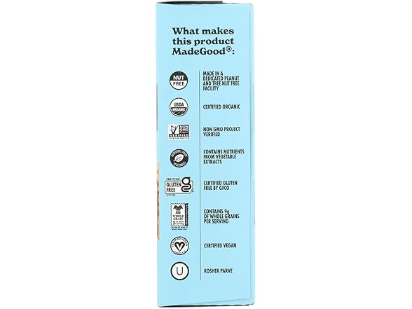 - MadeGood snacks are made in a peanut and tree nut-free facility and feature thoughtful ingredients for sharing.