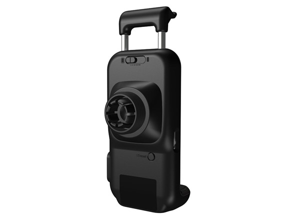 Adjustable mount accommodates most skins and hard cases