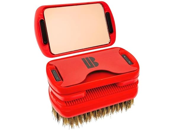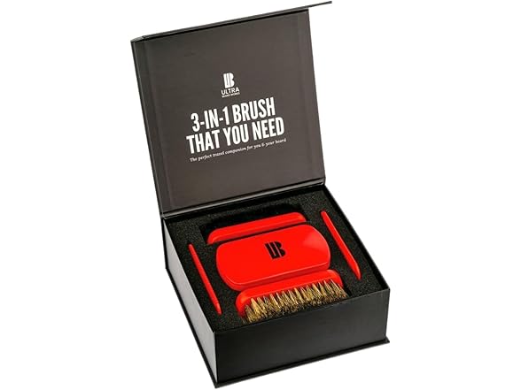 Introducing the newest advancement in men's grooming: the brand-new 3-in-1 brush set. This versatile product streamlines the male grooming routine and is incredibly portable. Whether you have a dense or smooth beard, long or short hair on your head or on your chin, this item will cater to your needs. Furthermore, it's designed to accommodate various hair and beard textures. This innovation is made possible by the ability to customize and swap out the brush and comb set you want to bring with you. Additionally, all sets come with a handy compact mirror that serves as the lid of the brush, perfect for on-the-go use.