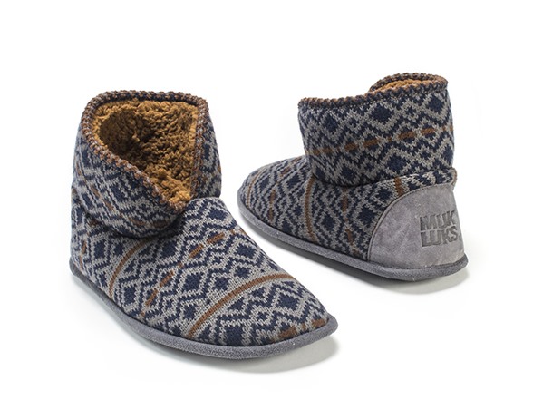 If keeping it cool, calm and subtle is your style the Shades of Grey Collection is more than perfect for you! The combination of neutral and pattern knits make it easy to wear. The Men's Mark Slipper has a 100% Acrylic upper and will keep your feet warm and comfortable with the 100% Polyester Furpa lining and insole. These slippers come in S (8-9), M (10-11) and L (12-13). Hand wash in cold water with mild soap and air dry. Made in China