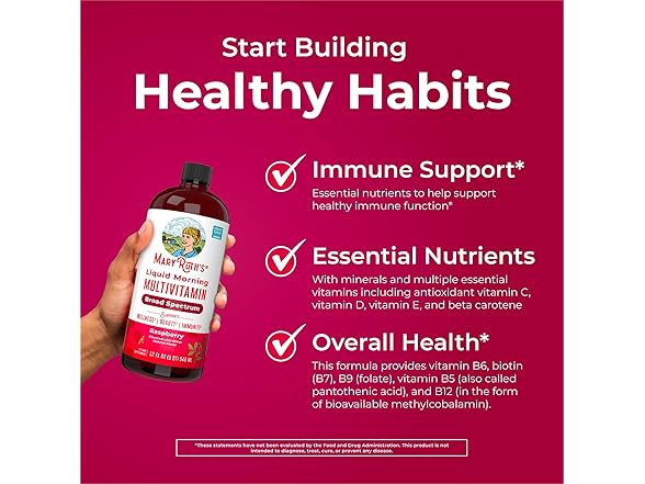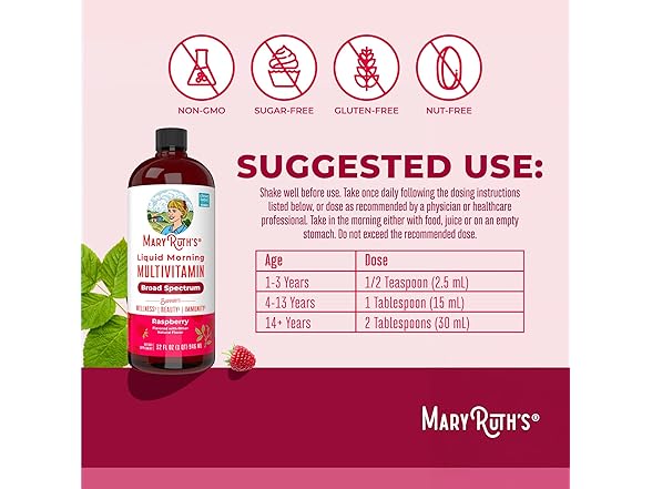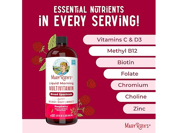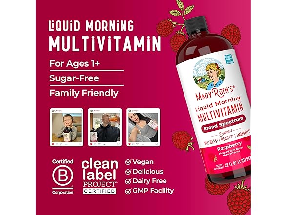 MaryRuth Organics Liquid Morning Multivitamin for Women, Men & Kids | Vitamin A C D E B6 B12 Biotin Zinc | Beauty | Vegan | Non-GMO | Gluten Free | 32 Servings