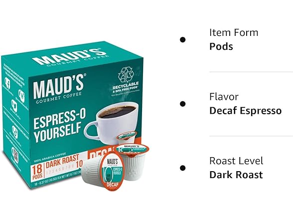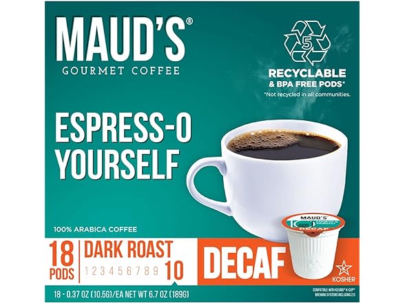 - Recyclable Decaf Espresso Pods - Our decaf espresso coffee pods are made from recyclable #5 plastic materials and feature easy peel tabs to ensure recyclability across the USA. Check your local recyclability facilities to find out more, not recyclable in all communities.