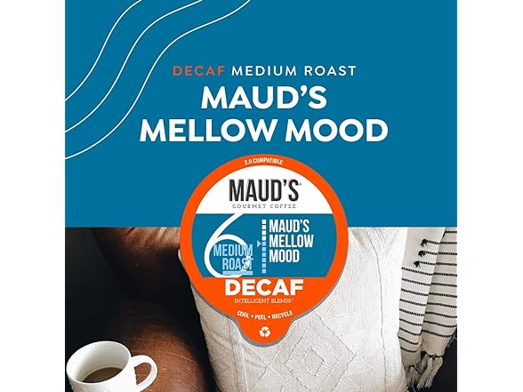 - Roast Profile - Maud's Mellow Mood Decaf Medium Roast is a cup of coffee that packs a punch of syrupy sweet berry acidity and finishes with a full chocolaty body.