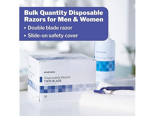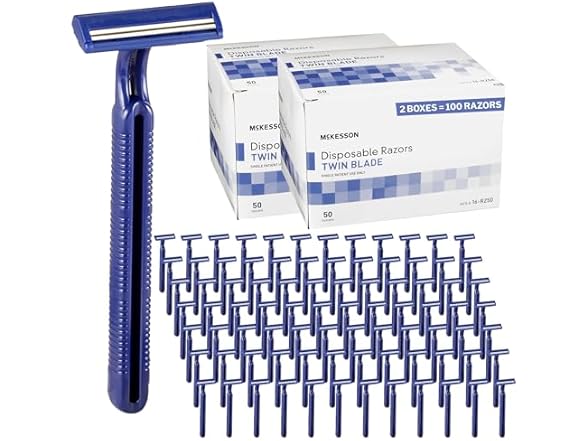 (1) McKesson Disposable Razors [100 Count] – Twin Blade Bulk Shaving Razors for Men & Women, Stainless Steel, Blue, Single-Use for Medical Clinics, Tattoo, Travel, Camping & Salon Care