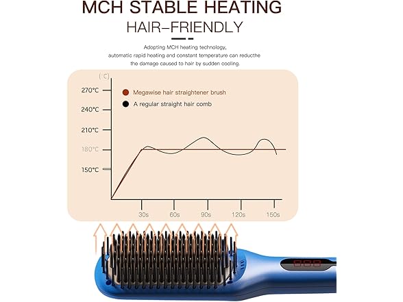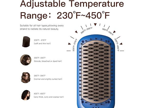 - Experience Salon-Quality Results in Minutes: Achieve sleek, frizz-free, and shiny hair faster with our upgraded hairbrush, featuring dual MCH ceramic heating units for precise temperature control up to 450°F. Enjoy smoother, healthier-looking hair in no time!