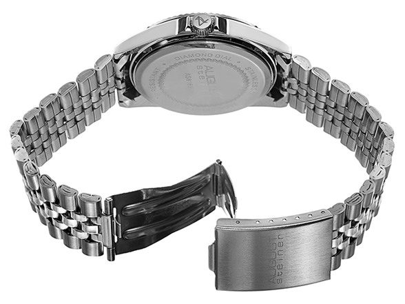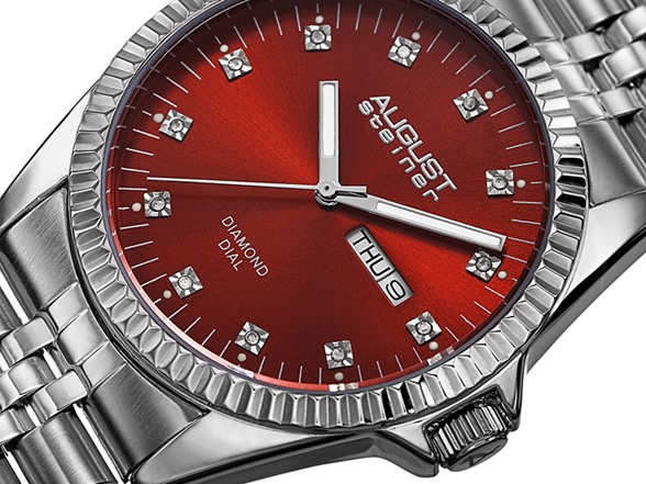 August Steiner presents this chic timepiece which features twelve sparkling genuine diamond markers. The stainless steel bracelet and Japanese quartz movement create a sturdy and reliable watch. The long hands enhance the classy and beautiful design.