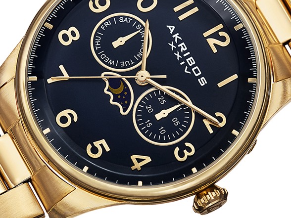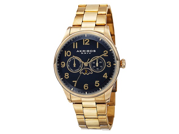 (1)Akribos XXIV Men's Swiss Quartz Multifunction Moon Phase Stainless Steel Bracelet Watch