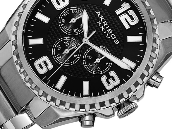 (1)Akribos XXIV Men's Swiss Quartz Multifunction Stainless Steel Bracelet Watch