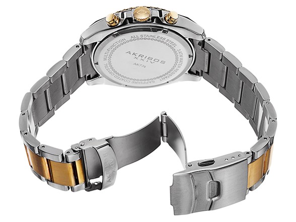 (1)Akribos XXIV Men's Swiss Quartz Multifunction Stainless Steel Bracelet Watch