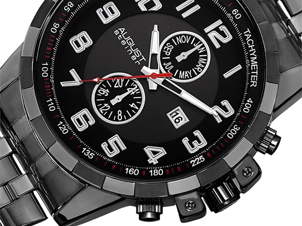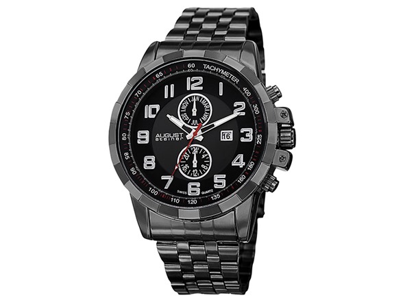This August Steiner men’s watch features a stainless steel bracelet and is powered by Swiss quartz movement. Its multifunctional dial conveniently displays the month and GMT. The tachymeter and bold design creates an attractive and stylish timepiece.