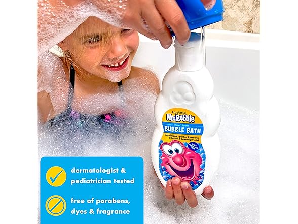 In the Box:- (1) Mr. Bubble Extra Gentle Bubble Bath - Hypoallergenic, Tear Free Bubble Bath Solution Perfect for Sensitive Skin, 16 fl oz