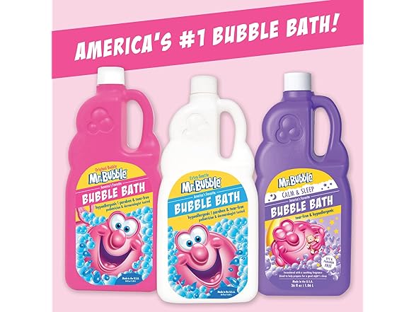 - YOUR BATH-TIME BUDDY: For over 60 years, Mr. Bubble has been one of the most popular bubble baths in America. Our products are made in the USA, creating the best bath time experience for adults, kids and babies.