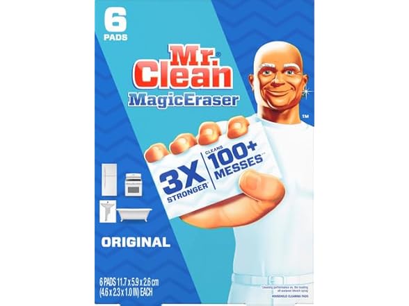 - 5. SIMPLIFY CLEANING: With Mr. Clean Magic Eraser, you can say goodbye to the need for separate bathroom cleaner, shower cleaner, melamine sponge, all purpose cleaning spray, bathroom spray, brillo pads cleaning pads, bathtub cleaner, wall cleaner, oven cleaner, scrubbing powder, scrubbing cream, stovetop cleaner, glass-top cleaner