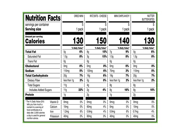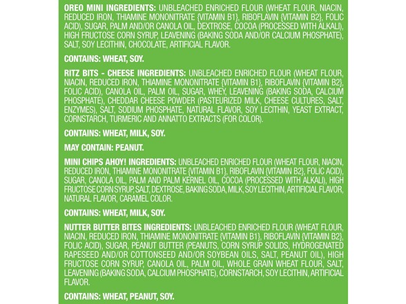 This Classic Mix Variety Pack includes OREO Mini cookies, CHIPS AHOY! Mini cookies, Nutter Butter Bites and RITZ Bits Cheese for all the classic flavors you know in convenient snack-size packages. This snack variety pack offers bite-size versions of these tasty treats, perfect for filling lunchboxes or on-the-go nibbling. Include these lunch snacks in your lunchbox for a special treat, or keep a bag at your desk to curb afternoon hunger. These bulk snacks include 20 individual packages for convenient storage and easy packing.