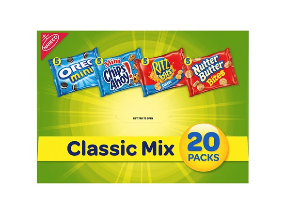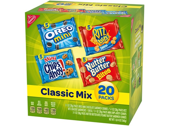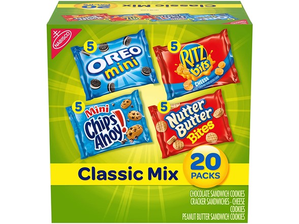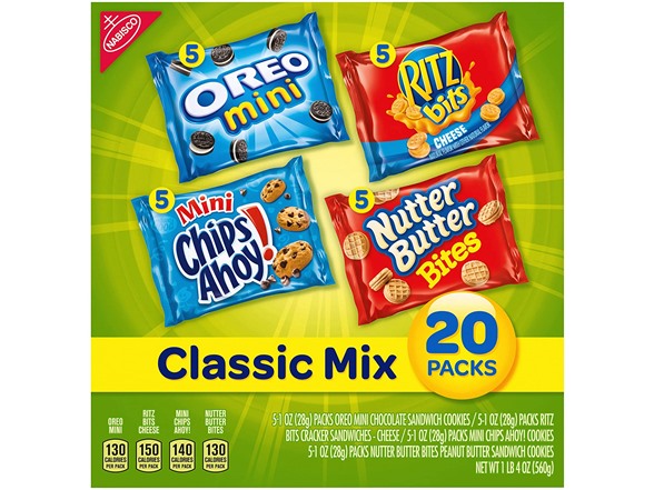 - One Classic Mix Variety Pack with 20 snack packs, including OREO Mini, CHIPS AHOY! Mini, Nutter Butter Bites, RITZ Bits Cheese