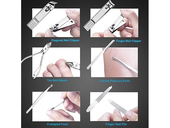 - Fingernail Clippers Made of top quality steel:Our Stainless steel nail tools are made of high quality steel, which is strong and durable, and it will not fade, extremely hard and sharp.Designed for lifetime use.Manicuring, Pedicuring, Anti-Acne, Exfoliating, Eyebrow Shaping.