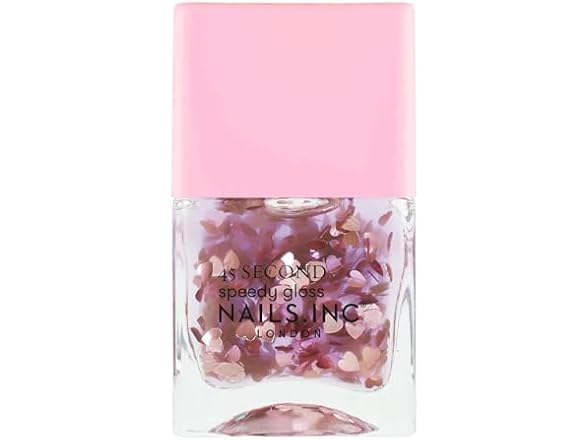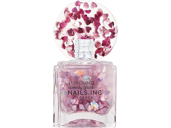 Nails Inc 45 Second Speedy Gloss, Margot, Pink Hearts, Top Coat, No Chip, Long Lasting, Quick Dry, Air Dry, Professional Manicures & Pedicures, Fingernails & Toenails, Vegan Nail Polish, 0.47 Fl Oz